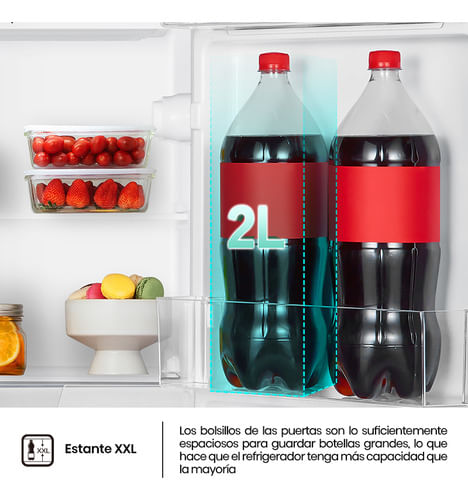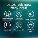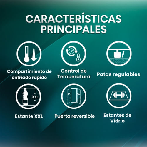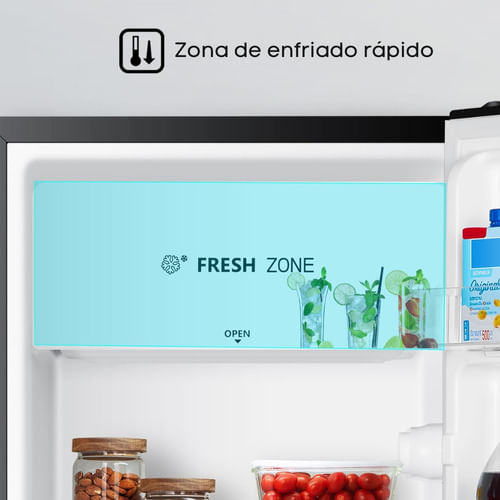 Esta heladera no solo es práctica, sino eficiente. Cuenta con un control de temperatura ajustable para conservar tus alimentos frescos por más tiempo con el frío ideal. La función Fresh Zone (compartimiento de enfriado rápido) es perfecta para enfriar bebidas o alimentos que necesiten refrigeración inmediata. En su interior, los estantes de vidrio templado y el cajón para frutas y verduras garantizan una organización eficiente y una limpieza sencilla. La protección metálica trasera aumenta la seguridad y durabilidad del equipo.
