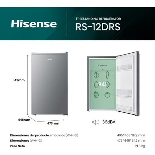 Heladera Bajo Mesada Hisense 94L Silver RS-12DRS