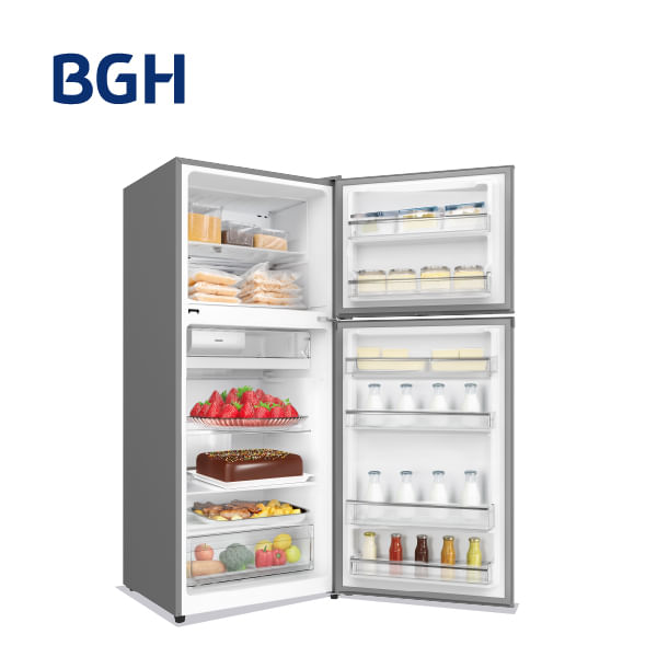 La heladera BGH BRT405I2A combina gran capacidad y eficiencia para hogares que necesitan espacio y organización. Su sistema No Frost evita la formación de escarcha, manteniendo los alimentos frescos por más tiempo sin necesidad de descongelado manual. El freezer superior facilita el acceso diario y su clasificación energética A++ garantiza un bajo consumo eléctrico. Con diseño moderno en Dark Inox Premium, se integra perfectamente a cocinas contemporáneas ofreciendo rendimiento y estilo.