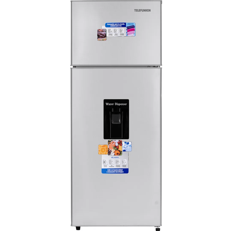 La heladera con freezer Telefunken TFK-HD220D 220L Silver destaca por su elegante diseño plateado que se adapta a cualquier cocina. Con 220 litros de capacidad, ofrece un amplio espacio de almacenamiento para mantener tus alimentos frescos y congelados de manera eficiente. Además cuenta con Dispenser para agua.