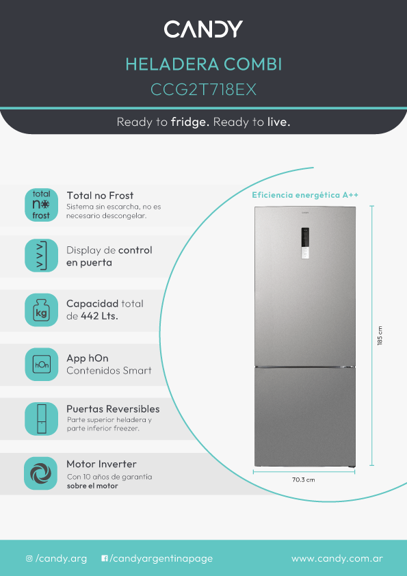 HELADERA CANDY CCG2T718EX 442LTS INVERTER SILVER