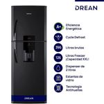 Esta heladera de diseño elegante combina un color silver con detalles en negro y cromado, aportando estilo y modernidad a cualquier cocina. ofrece un amplio espacio para organizar y conservar tus alimentos. Incluye anaqueles en la contrapuerta, un dispenser de agua de 2 litros, huevera y cubetera, asegurando practicidad y versatilidad. Además, su iluminación LED proporciona mayor claridad en el interior, optimizando la visibilidad y el consumo energético.