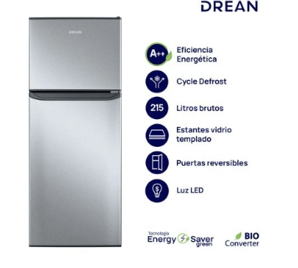 La heladera chica con freezer Drean RZD215PVARX0.215.ACERO combina diseño moderno y funcionalidad en un formato compacto ideal para espacios reducidos. Su acabado en acero inoxidable le otorga elegancia y durabilidad. Con un eficiente sistema de enfriamiento, conserva alimentos y bebidas a la temperatura óptima. Perfecta para hogares pequeños, oficinas o departamentos tipo estudio.