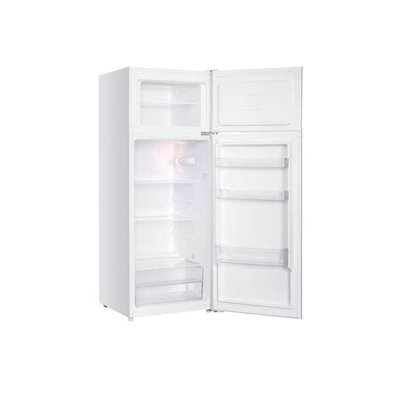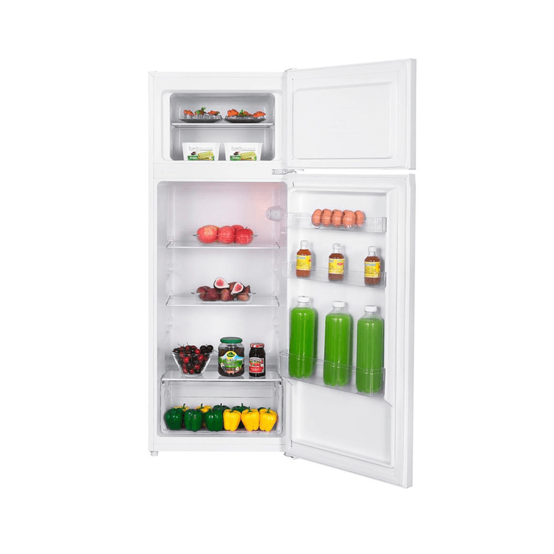 Este modelo cuenta con un freezer ubicado en la parte superior, optimizando su espacio y facilitando el acceso a los productos congelados. Además, su eficiencia energética clasificada como 'A' garantiza un bajo consumo eléctrico, contribuyendo así a un estilo de vida más sostenible. Su diseño compacto, con unas dimensiones de 54 cm de profundidad, 55 cm de ancho, y 1.42 m de altura, la convierte en la opción perfecta para cocinas pequeñas o departamentos.