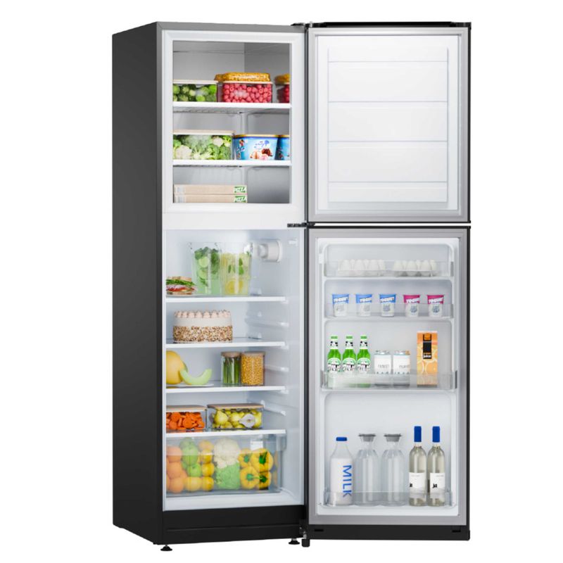 Heladera con freezer cíclica. Eficiencia energética A+. Color black steel. Ancho XXS. Freezer XXL. Gas ecológico R600a. Capacidad bruta 314 litros. Capacidad neta 302 litros. Deshielo manual. Estantes de vidrio templado regulables en altura para una mayor resistencia. Anaqueles en contrapuerta para botellas y alimentos regulables en altura. Cajón para frutas y verduras. Cubeteras. Huevera. Apertura de puerta controlada. Control de temperatura interior. Luz interior LED. Origen Argentina.