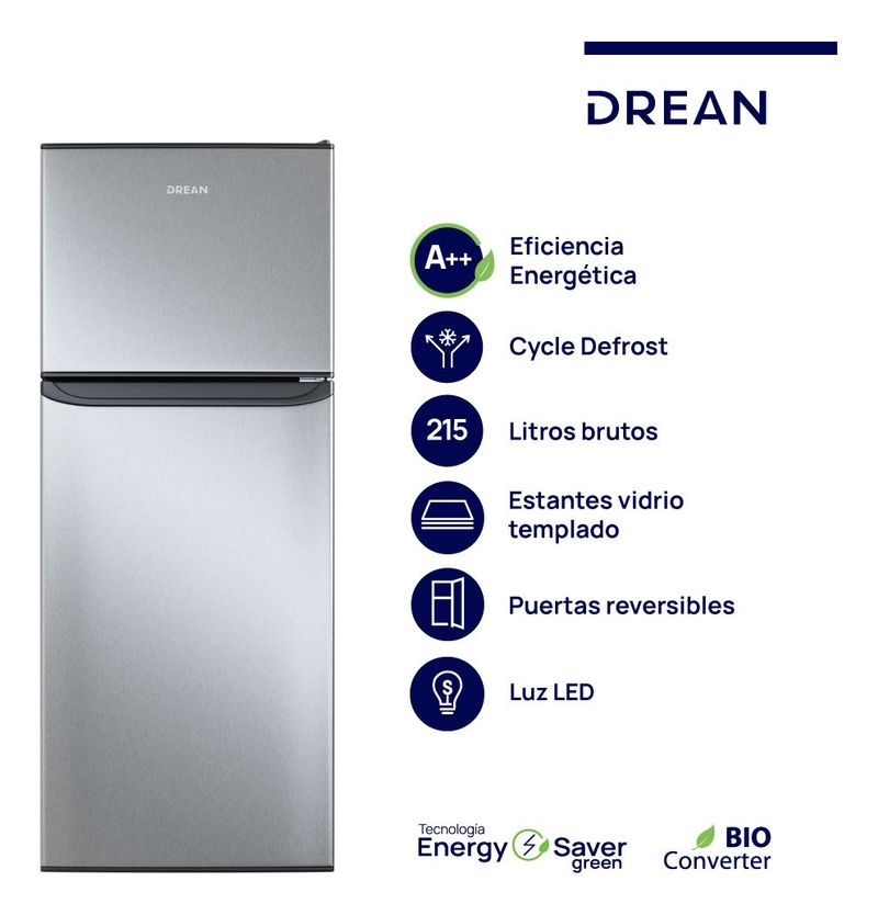 Heladera con Freezer Ciclica Drean 215 litros color inox Rzd215pvarx0