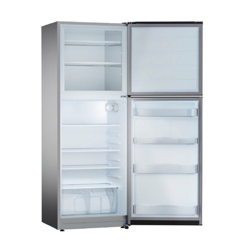 Heladera con freezer cíclica. Eficiencia energética A+. Color silver. Gas R600a. Capacidad bruta 397 litros. Deshielo manual. Estantes de vidrio en refrigerador y alambrón en freezer. Anaqueles en contrapuerta. Cajón para frutas y verduras. Control de temperatura interior. Luz LED. Origen Argentina.