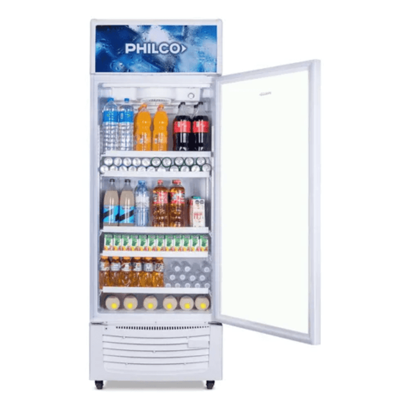 Heladera Exhibidora Philco PHEV528B2, diseñada especialmente para locales comerciales, minimercados o emprendimientos gastronómicos. Su amplio espacio interior y su sistema de refrigeración cíclica garantizan una