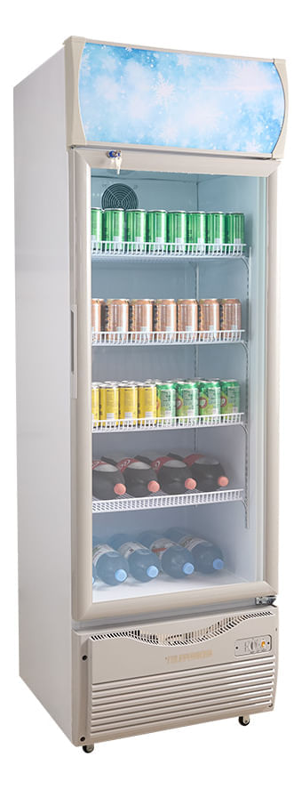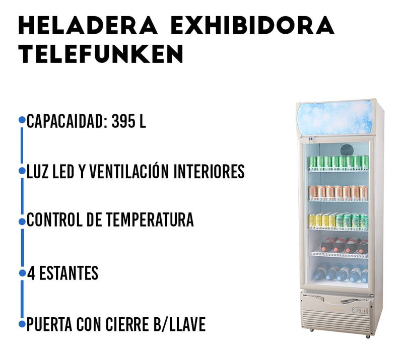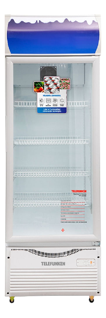 Heladera Exhibidora Telefunken TFK-EX395, de 395 litros de capacidad, ideal para mantener y exhibir productos frescos en tiendas y comercios.