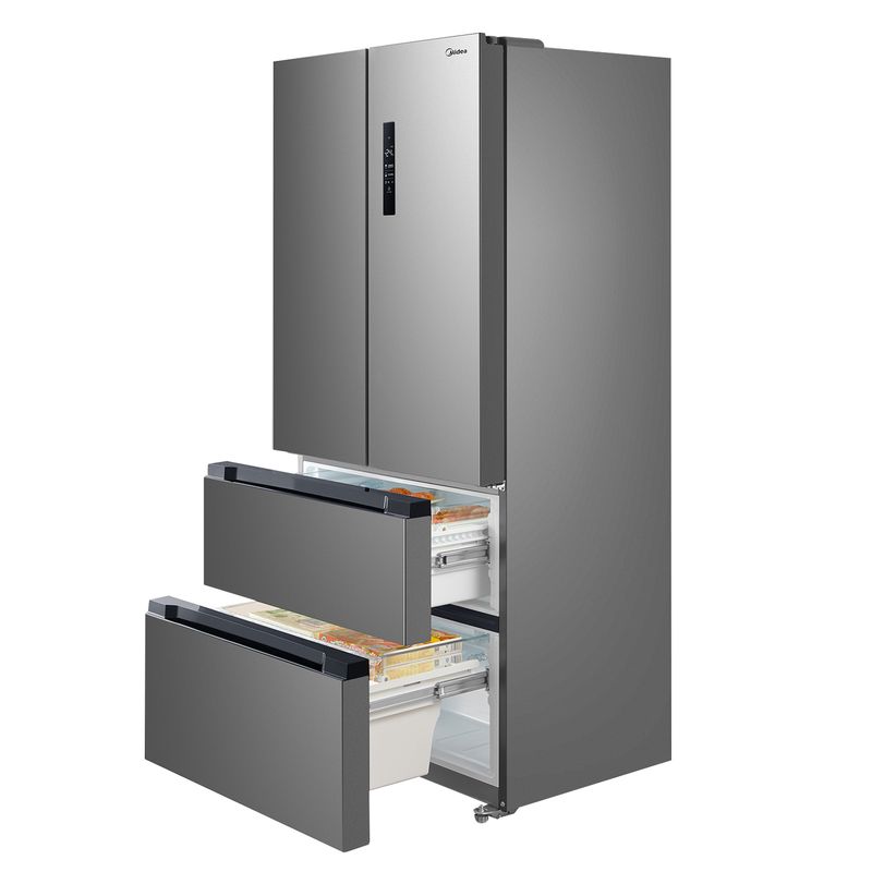 FRESCURA PRECISA PARA TODOS LOS ALIMENTOS. Las nuevas heladeras Midea cuentan con Dual Cooling System, que consiste en el funcionamiento independiente el freezer y heladera. Con este sistema no se mezclan los olores y se mantienen las temperaturas balanceadas. Inverter Quattro: Ofrece un alto rendimiento, alimentos más frescos, enfriamiento rápido, bajo ruido y ahorro de energía. Inverter Quattro: Ofrece un alto rendimiento, alimentos más frescos, enfriamiento rápido, bajo ruido y ahorro de energía. Metal Cooling: Recubrimiento metálico en la heladera que garantiza la rápida recuperación del frío, para mejor preservación de los alimentos. Metal Cooling: Recubrimiento metálico en la heladera que garantiza la rápida recuperación del frío, para mejor preservación de los alimentos. Platinum Fresh: Filtro desodorizador con tecnología de platino que elimina los olores dejando un ambiente siempre fresco. Platinum Fresh: Filtro desodorizador con tecnología de platino que elimina los olores dejando un ambiente siempre fresco. Control de humedad: 2 cajones de vegetales independientes para seleccionar la humedad adecuada para frutas y verduras. Control de humedad: 2 cajones de vegetales independientes para seleccionar la humedad adecuada para frutas y verduras. Sistema de frío: Total no frost Sistema de frío: Total no frost Eficiencia energética: ++ A Eficiencia energética: ++ A Capacidad neta: 470 lts. ESPECIFICACIONES TÉCNICAS Dimensiones (An. x Al. x Prof.) 833 x 1898 x 648 mm Volumen Neto 470 lts. Freezer 134 lts. Refrigerador 336 lts. Inverter Sí Multi Air Flow Sí Panel LCD Sí Control de Temperatura Digital Peso Neto 106 kg Eficiencia Energética ++A Voltaje – Alimentación Eléctrica 220 V ~ 50HZ Origen China Garantía 2 años Modelo RF-F17XAR1