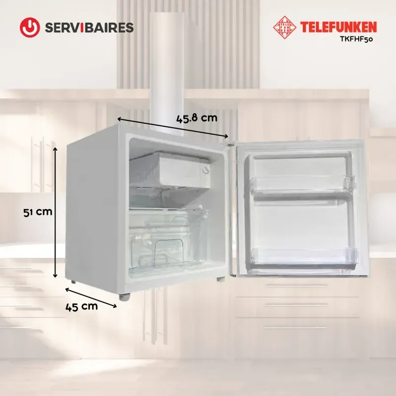 La Heladera Minibar Telefunken TFK-HF50 es la solución ideal para espacios pequeños, oficinas, habitaciones o donde necesites comodidad y practicidad en refrigeración.