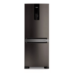 Fabricada en Brasil, este modelo cuenta con eficiencia energética A+, un motor inverter de bajo consumo y tecnología Super Frío Turbo que ajusta rápidamente la temperatura según las necesidades. Su diseño incluye un panel Touch externo para controlar la temperatura, estantes de vidrio removibles, luz LED interior, crisper especial multiuso y compartimientos diseñados para botellas y vegetales. Además, incorpora funcionalidades como modo vacaciones, fiestas y compras, alarma de puerta y traba de seguridad en el panel.