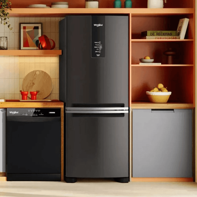 La Heladera Whirlpool WRE57CE No Frost Inverter combina diseño moderno y tecnología avanzada para satisfacer las necesidades de cualquier hogar. Con una capacidad neta total de 447 litros (311 L para el refrigerador y 136 L para el freezer), ofrece amplio espacio para almacenar alimentos de manera eficiente. Su sistema No Frost evita la formación de escarcha, reduciendo el mantenimiento necesario y optimizando la conservación de los productos.