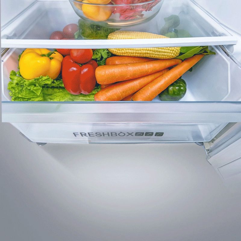 Cajón XL Fresh Box: Guardá todas tus frutas y verduras con total comodidad. Este cajón mantiene la humedad ideal, evitando que la lechuga se te oxide a los dos días y conservando todas las vitaminas.