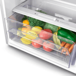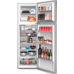Tipo: Heladera No Frost con Freezer superior. Tecnología Inverter: Mantiene la temperatura estable y ahorra hasta un 34% de energía. Sistema No Frost: Evita la formación de escarcha y permite descongelación automática. Sistema Multiflow: Distribuye mejor la humedad y conserva frescura, aroma y sabor. Compartimento extra frío: Enfría comidas y bebidas más rápido. Ice Twister: Sistema giratorio para obtener hielo fácilmente. Bandejas de vidrio templado: Resistentes, duraderas y fáciles de limpiar. Puertas reversibles: Permiten adaptar la apertura según el espacio disponible. Smart Distribution: Estantes ajustables para botellas y alimentos de distintos tamaños. Luz LED: Ilumina mejor el interior con menor consumo. Clasificación energética: A+ Capacidad total: 262 litros (Freezer: 65L / Heladera: 197L). Voltaje: 220V Dimensiones sin caja (Al x An x Prof): 167 x 54.5 x 56 cm Peso: 43 kg (47 kg con embalaje)