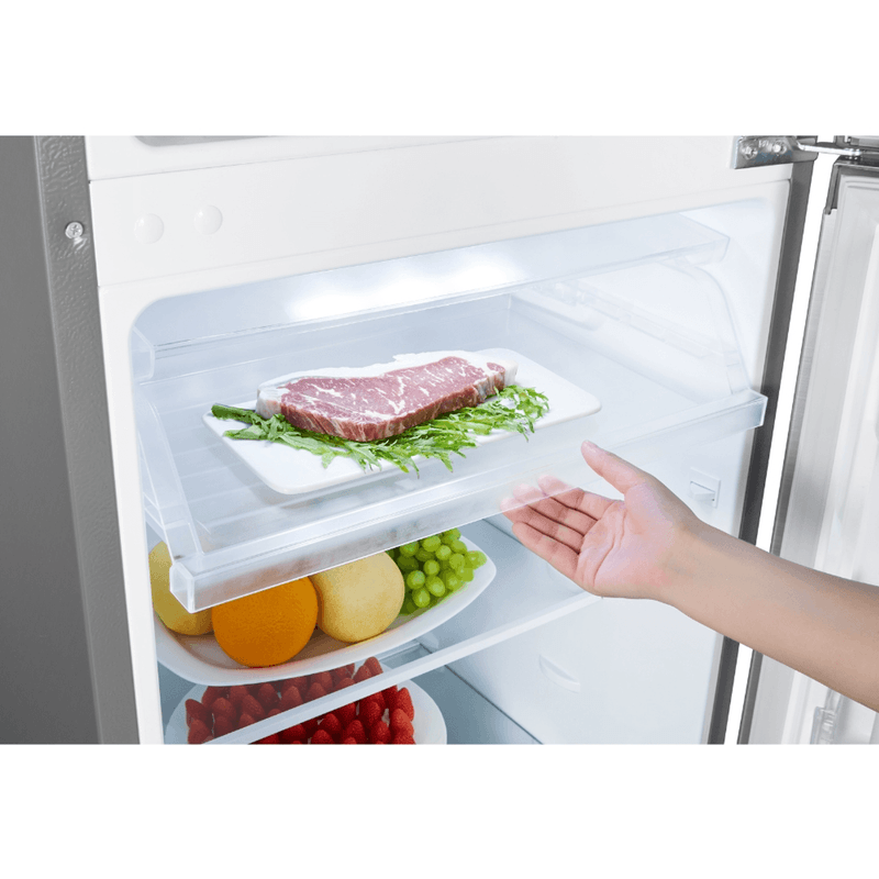 Su interior bien distribuido ofrece estantes de vidrio templado ajustables y cajones amplios para frutas y verduras, permitiendo una organización flexible según tus necesidades. Las puertas reversibles facilitan su integración en cualquier rincón de la cocina.