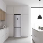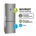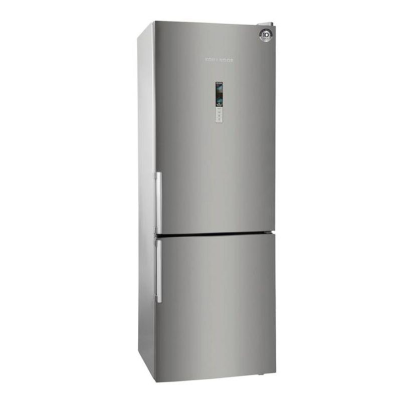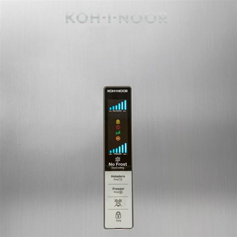 La heladera KOH-I-NOOR DuoCooling Inverter 417L Acero KHGA41DI/10 es un electrodoméstico de alta gama que se destaca por su exclusiva tecnología DuoCooling, la cual combina eficientemente frío seco (No Frost) en el freezer para evitar la formación de escarcha, y frío cíclico (húmedo) en la heladera para preservar la humedad y frescura natural de los alimentos por más tiempo. Impulsada por un motor Inverter, este modelo ofrece una notable eficiencia energética (Clase A+), un funcionamiento más silencioso y mayor durabilidad, respaldado por 10 años de garantía en el compresor. Con una generosa capacidad total bruta de 417 litros (397 litros netos) y un diseño moderno en acero con freezer inferior, también incorpora un práctico control digital en la puerta y funciones como "Super Frost" y alarma de puerta abierta.
