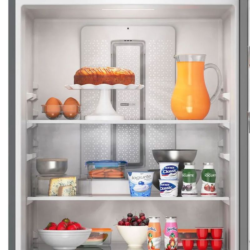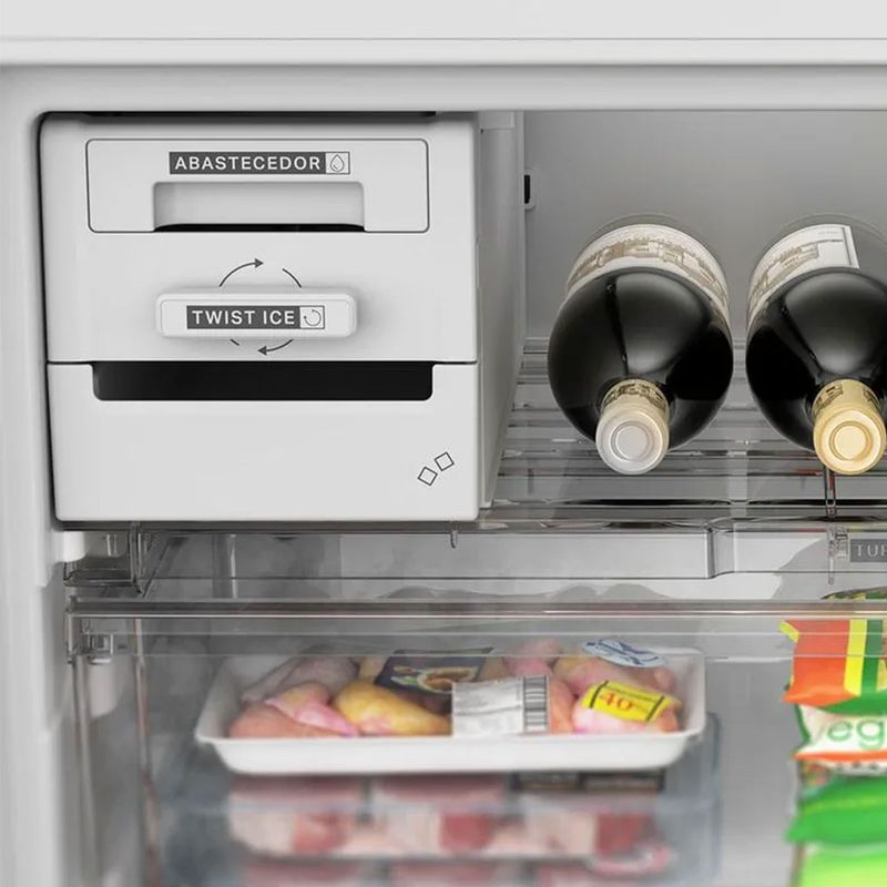 Diseño No Frost Funcional: Olvidate de descongelar: la tecnología No Frost evita la formación de hielo. El Freezer Inferior mejora la ergonomía al dejar los alimentos de uso diario a la altura de la vista. Incluye el práctico Aviso de Hielo Listo en el panel y hueveras movibles con capacidad para 12 huevos.