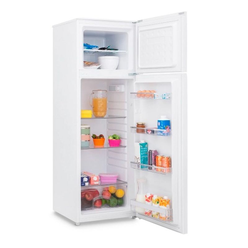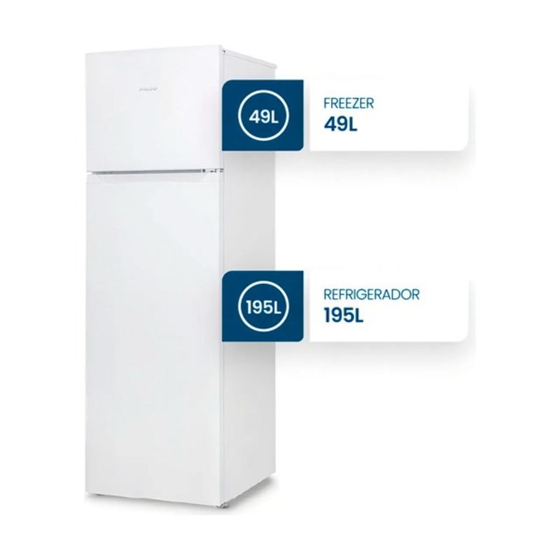 Cuenta con un moderno diseño, disponible en color blanco y acero inoxidable.Tiene una capacidad de 260 Lts y puertas reversibles para que las abras a tu manera. Cuenta con 3 estantes de vidrio ajustables y 4 anaqueles en puerta para que puedas organizar tus alimentos y botellas a gusto. En la parte superior se encuentra el frezzer, y en la inferior tiene cajones para frutas y verduras parar preservar la humedad y frescura.