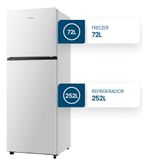 Con una capacidad total de 324 litros, esta heladera cuenta con un refrigerador de 252 litros y un freezer superior de 72 litros, ofreciendo amplio espacio para almacenar todo lo que necesites. Sus estantes de vidrio templado son resistentes y fáciles de limpiar, mientras que el compartimento para verduras asegura que tus productos se mantengan frescos por más tiempo. Además, incluye un práctico soporte para botellas, optimizando el espacio interior.