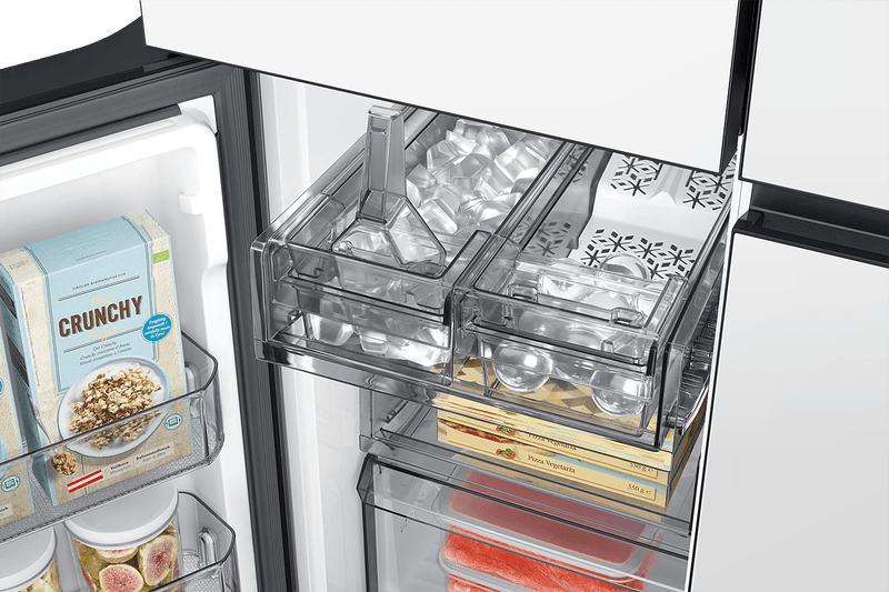 Heladera Bespoke AI French Door de 843L con diseño elegante y moderno que se adapta a cualquier cocina. Su estilo Bespoke y color Clean White aportan un look premium, combinando estética y funcionalidad en un solo equipo.