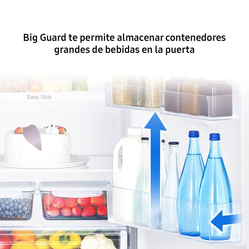 Big Guard te permite almacenar contenedores grandes de bebidas en la puerta, junto con dos filas de latas y botellas. Big Guard también es ideal para enfriar botellas de bebidas altas.