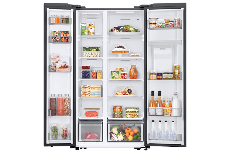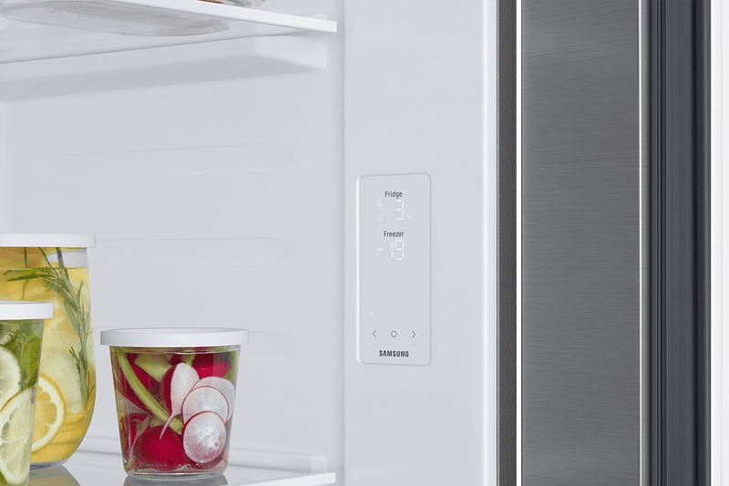 Gracias a su tecnología No Frost y el sistema All Around Cooling, mantiene una temperatura uniforme en todo el interior y evita la formación de escarcha. Ofrece 560 litros netos distribuidos en estantes de vidrio templado, cajones y compartimentos que permiten organizar los alimentos de forma práctica. Incorpora dispenser de agua exterior, función Power Cool para enfriado rápido y conectividad SmartThings que permite controlarla desde el smartphone. Su acabado Silver Matt aporta elegancia y estilo a la cocina.