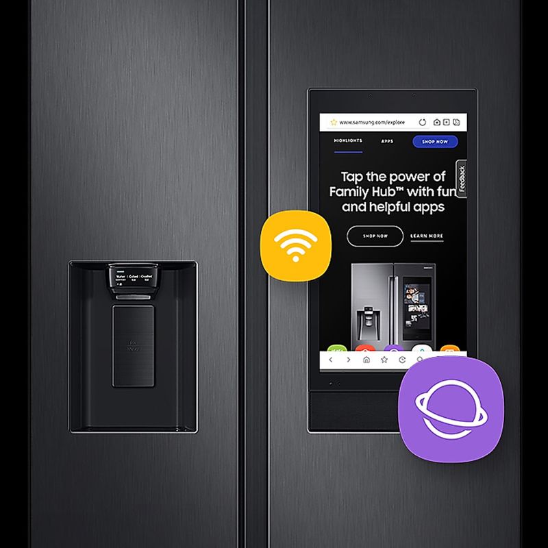 El wifi integrado en la Family Hub te ofrece una forma simple de compartir imágenes, administrar calendarios familiares y mantenerte conectado. También podés mirar TV, usar aplicaciones de tu smartphone y reproducir música en Spotify. Incluso te ayuda en la administración y la compra de los alimentos, además de controlar fácilmente los electrodomésticos inteligentes de tu hogar.