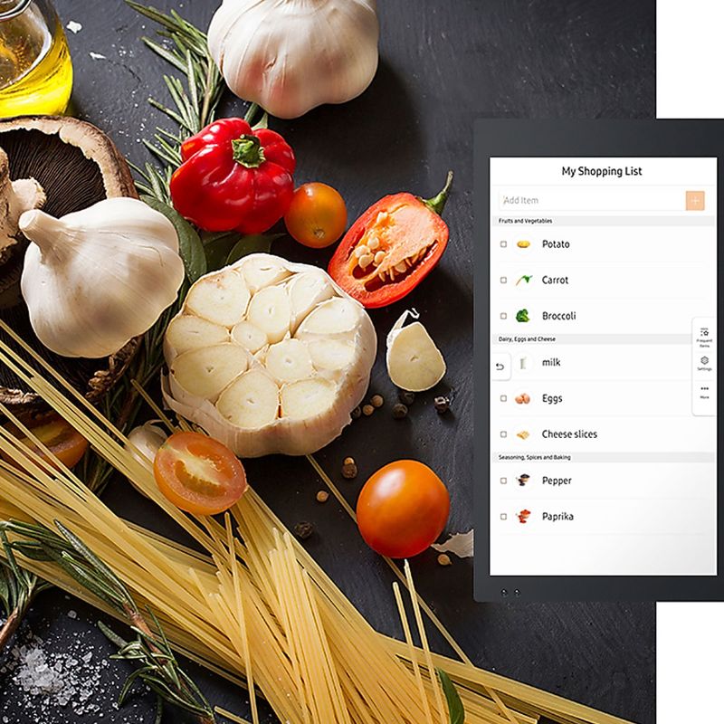 Organizá fácilmente tus comidas y las compras de alimentos con la aplicación de Lista de compras. Simplemente, agregá cualquier artículo que necesites a la lista con un toque. Después, sincronizala con tu teléfono para consultarla en el supermercado.