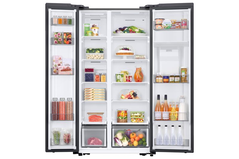 La heladera Samsung RS57DG4100M9BG está pensada para quienes buscan máxima capacidad, tecnología avanzada y un diseño moderno para la cocina. Sus 560 litros totales permiten almacenar cómodamente compras grandes, mientras que el sistema No Frost y el enfriamiento Mono Cooling garantizan una temperatura uniforme en cada rincón.