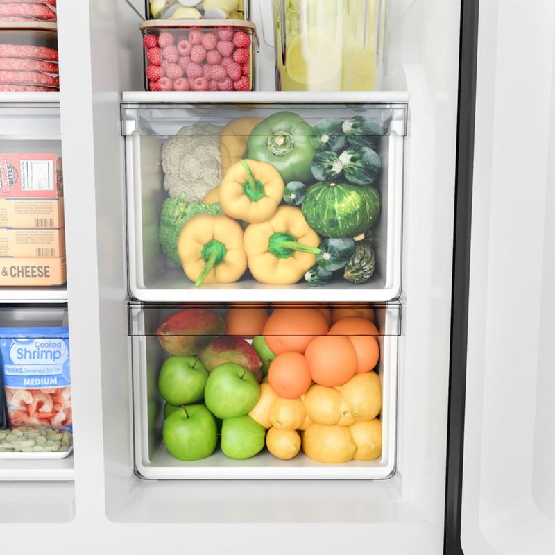 Cajones XXL y Estantes de Vidrio: Aprovechá el espacio al máximo con cajones gigantes para frutas y verduras, y estantes de vidrio templado regulables que soportan recipientes pesados con total seguridad.