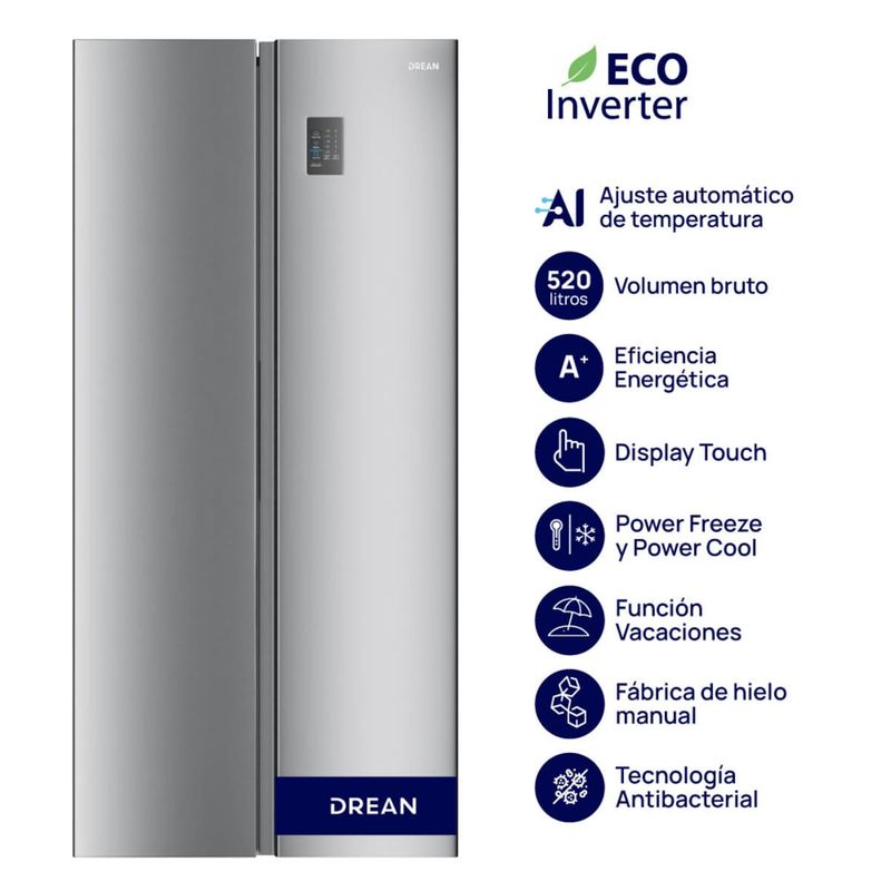 Heladera Side By Side Drean DSP480LKRSS0 503L: Inteligencia Artificial y Eficiencia Inverter