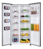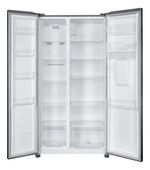 Con formato Side by Side, esta heladera divide el acceso en dos puertas verticales: heladera y freezer, ideal para uso familiar y organización eficiente.