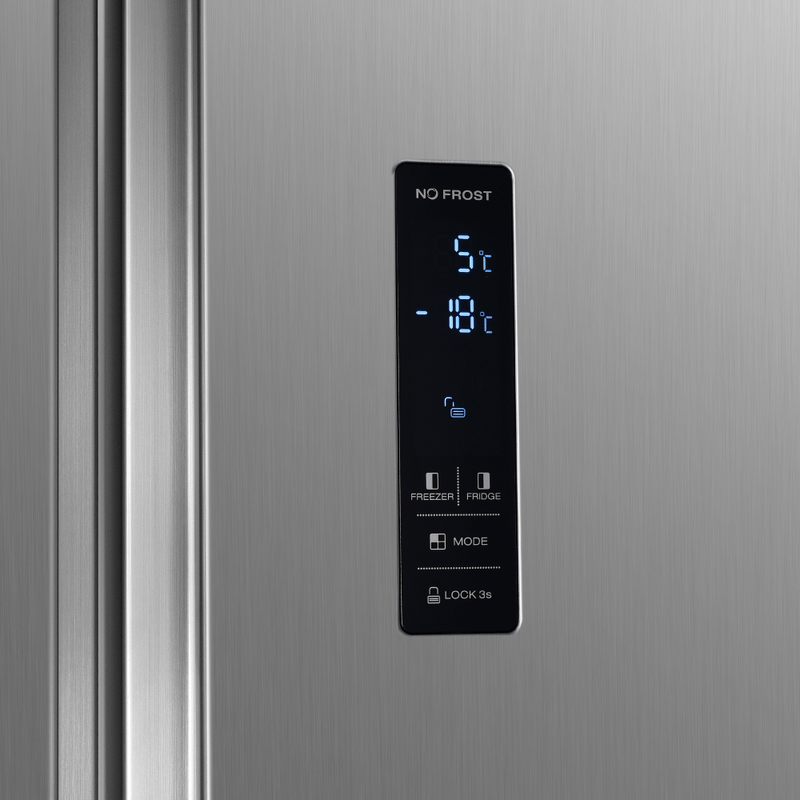 El sistema No Frost evita la formación de hielo, mientras que el Twist Ice Maker te permite obtener cubitos de forma rápida y cómoda. Sus estantes de vidrio templado con borde antiderrame aportan resistencia y seguridad, y el display digital en la puerta facilita el control preciso de la temperatura.