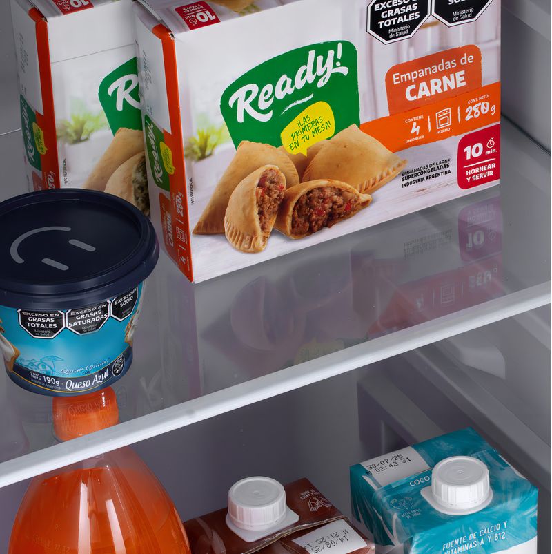 Sus estantes de vidrio templado, cajón para frutas y verduras y luz interior facilitan la organización y el acceso a los alimentos.