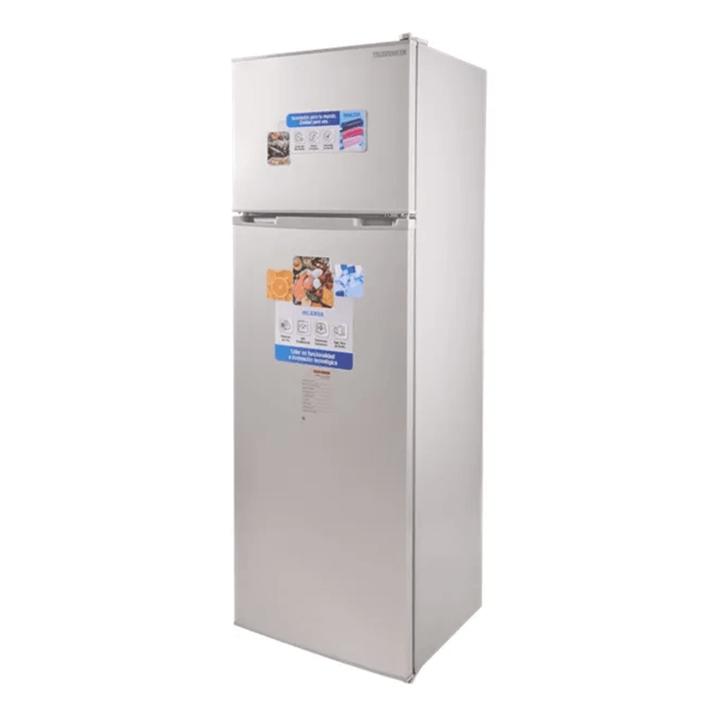 La Heladera Con Freezer Cíclica 300l Telefunken HD300 Silver es la solución perfecta para quienes buscan un electrodoméstico eficiente y funcional. Su diseño elegante en gris-plata se adapta a cualquier cocina, mientras que su capacidad total de 300 litros ofrece amplio espacio para almacenar todos tus alimentos y bebidas. Equipado con un práctico freezer superior, podrás congelar tus alimentos de manera fácil. Los estantes de vidrio de alto impacto aseguran durabilidad y fácil limpieza. Además, cuenta con un cajón diseñado especialmente para mantener frescas las frutas y verduras. Con un regulador manual de temperatura, tendrás el control preciso sobre el enfriamiento. Esta heladera no es un minibar, pero sí incluye convenientemente porta botellas, porta latas y porta huevos, todo pensado para tu comodidad. Su descongelamiento es manual, asegurando un mantenimiento simple. Con la luz LED interior, tendrás siempre una vista clara de tus productos almacenados. Una opción ideal para tu hogar.