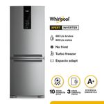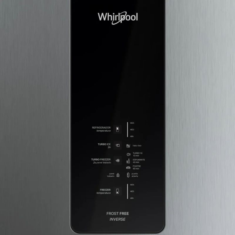 La heladera Whirlpool WRE57CK es un electrodoméstico de alta gama, tipo bottom freezer y con tecnología No Frost, que ofrece una generosa capacidad neta total de 449 litros. Su característica principal es el motor Xpert Inverter, que garantiza un funcionamiento silencioso, alta eficiencia energética y durabilidad prolongada, respaldada por 10 años de garantía. El diseño Platinum le otorga un acabado moderno y elegante, mientras que sus funciones inteligentes, como Turbo Ice y Turbo Freezer, optimizan la conservación de alimentos y la comodidad de uso. La organización interna es flexible gracias a los estantes ajustables de vidrio templado, lo que la convierte en una opción robusta y eficiente para cualquier hogar.