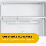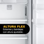 Estantes con altura regulable para brindar mayor comodidad y aprovechamiento del interior del refrigerador. Dos estantes con cuatro niveles de altura que permiten adaptar el espacio de guardado a las diferentes necesidades sin removerlos.