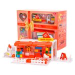 -Escena de juego transformable: la casa contenedor se abre para formar un ambiente de juego temático.