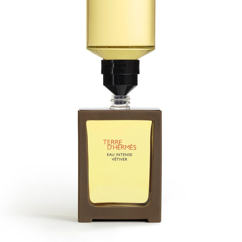 Terre d’Hermès Eau Intense Vétiver, una fragancia amaderada e intensa,expresa la profundidad del vetiver combinada con la vivacidad de labergamota verde y de la pimienta de Sichuan.