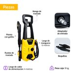 Incluye: Lanza, pistola de gatillo, 2 boquillas, manguera, Pin de limpieza, adaptador de entrada con filtro.