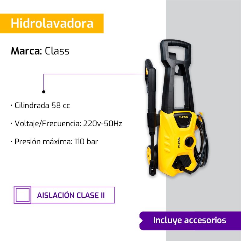 Hidrolavadora 110Bar 1400w Con Mango Y Ruedas Class