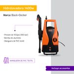 Hidrolavadora Black+Decker Alta Presión Eléctrica 1400W