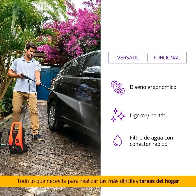 -Máxima potencia de 1512psi (105bar) para todo tipo de limpieza en el hogar