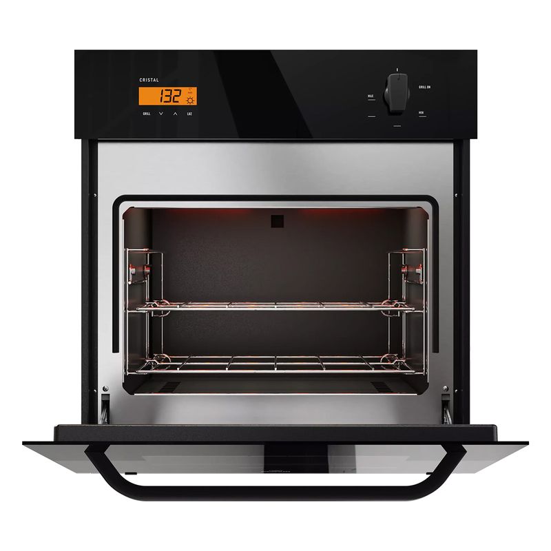 El Horno Morelli 600 Cristal combina diseño moderno, seguridad y funcionalidad para uso doméstico. Su frente de vidrio templado de alta resistencia y comandos digitales lo convierten en una opción práctica y elegante. Incluye visor de temperatura, temporizador programable, encendido electrónico y luz interior para mayor comodidad.