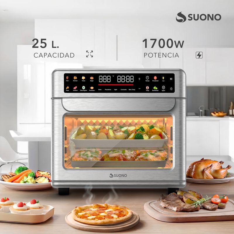 Horno Eléctrico Suono 25L con Freidora de Aire – Potente y Versátil