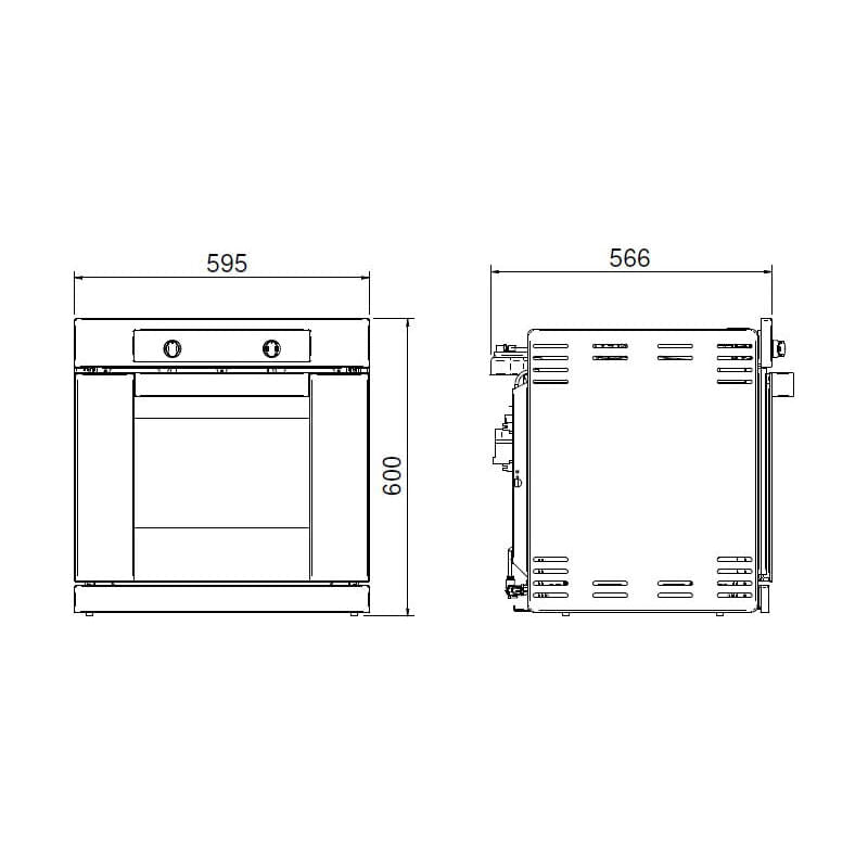 - Medidas del nicho: ancho 56 a 56,5 cm, alto 58,5 a 59 cm, profundidad mínima 57 cm.