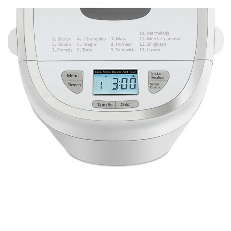 Su diseño compacto y moderno incluye 13 programas preestablecidos para preparar pan, tortas, mermeladas ¡y mucho más! Podés personalizar cada receta con sus 3 niveles de tostado y seguir cada paso fácilmente gracias a su display LCD.