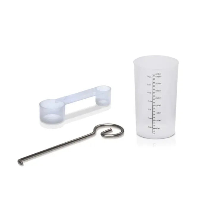Accesorios: Cuchara plástica / Taza plástica para / Pinza metálica / Accesorio para baguettes