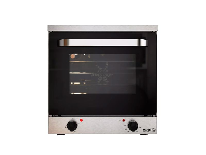 El Horno Eléctrico Convector Morelli Dorato combina diseño moderno y alto rendimiento. Su exterior de acero inoxidable y puerta de doble vidrio templado con mango aislante garantizan seguridad y durabilidad. Cuenta con turbina interna para una cocción pareja, luz interior y control de temperatura de hasta 250 °C.